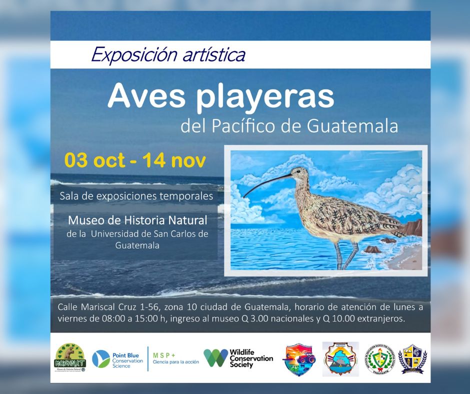 The exhibition will remain open to the public until November 14 at the USAC Natural History Museum (Calle Mariscal Cruz 1-56, Zone 10, Guatemala City). In addition to the artworks, visitors can explore information about shorebird ecology, the significance of migratory routes, and actions that citizens can take to support their conservation.